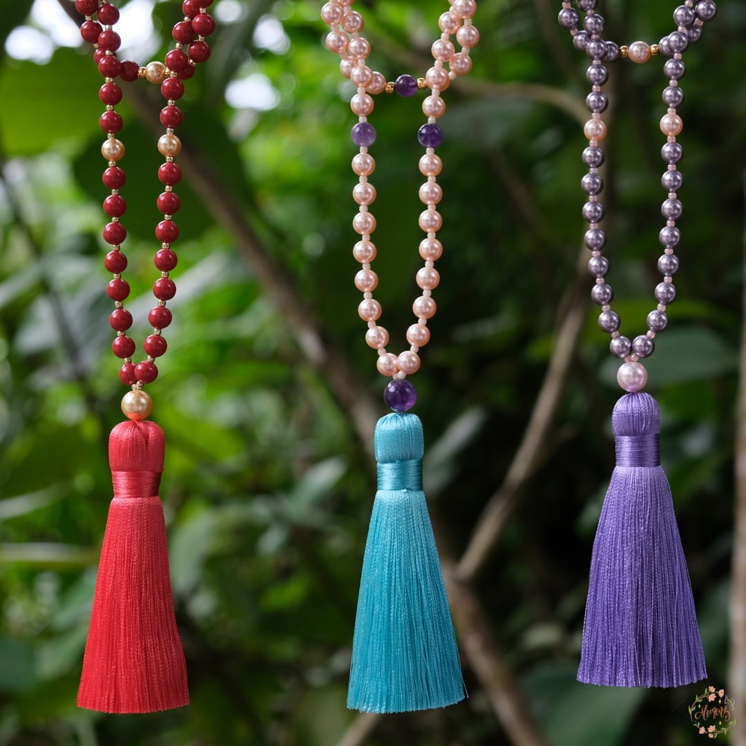 "Ulysses" is one of our special mala which includes 6mm amethyst beads and 6mm Swarovski pearls ♥